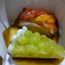 迷いに迷って、トンプソンというぶどうのタルトと、ブラッドオレンジのタルトに。