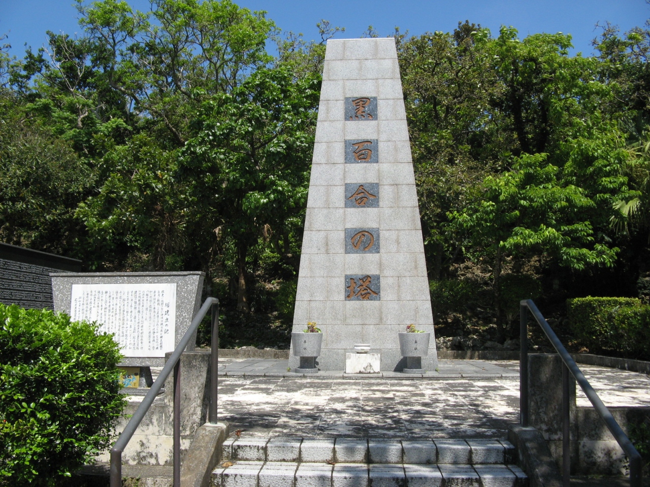 碑文を読むと、「黒百合の塔」の名は、石川県の名峰白山の高峰に咲く黒百合から名付けられたものだそうで、他府県の慰霊塔に比べて簡素で敷地もかなり狭いですが、英霊に対する思いは伝わってきます。