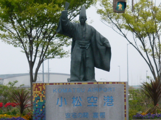 小松駅から車で15分ほどのところに在る「小松空港」へ立ち寄りました。金沢駅や福井駅からも車で1時間以内という便利なアクセス。国内線をはじめ中国、韓国、台湾へと国際線路線があります。また敷地内には小松基地があるため展望デッキからは運が良ければ戦闘機の発着もみることができることから航空ファーンには必見です。1階到着ロビーの小スペースで地元物産店が出店していたのでヨモギ餅と豆餅をお土産に購入したところ大変喜ばれました。