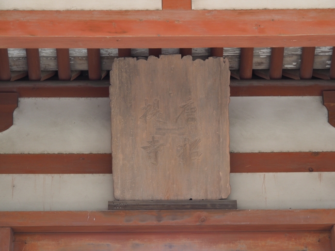 はエンタシスの柱と扁額です。南大門そのものは昭和の再建ですが歴史で勉強したエンタシスの柱(しかも木造)と孝謙天皇の手になる「唐招提寺」四文字の扁額です。奈良時代も現代も変わらぬ日本の文字の素晴らしさを再確認します。