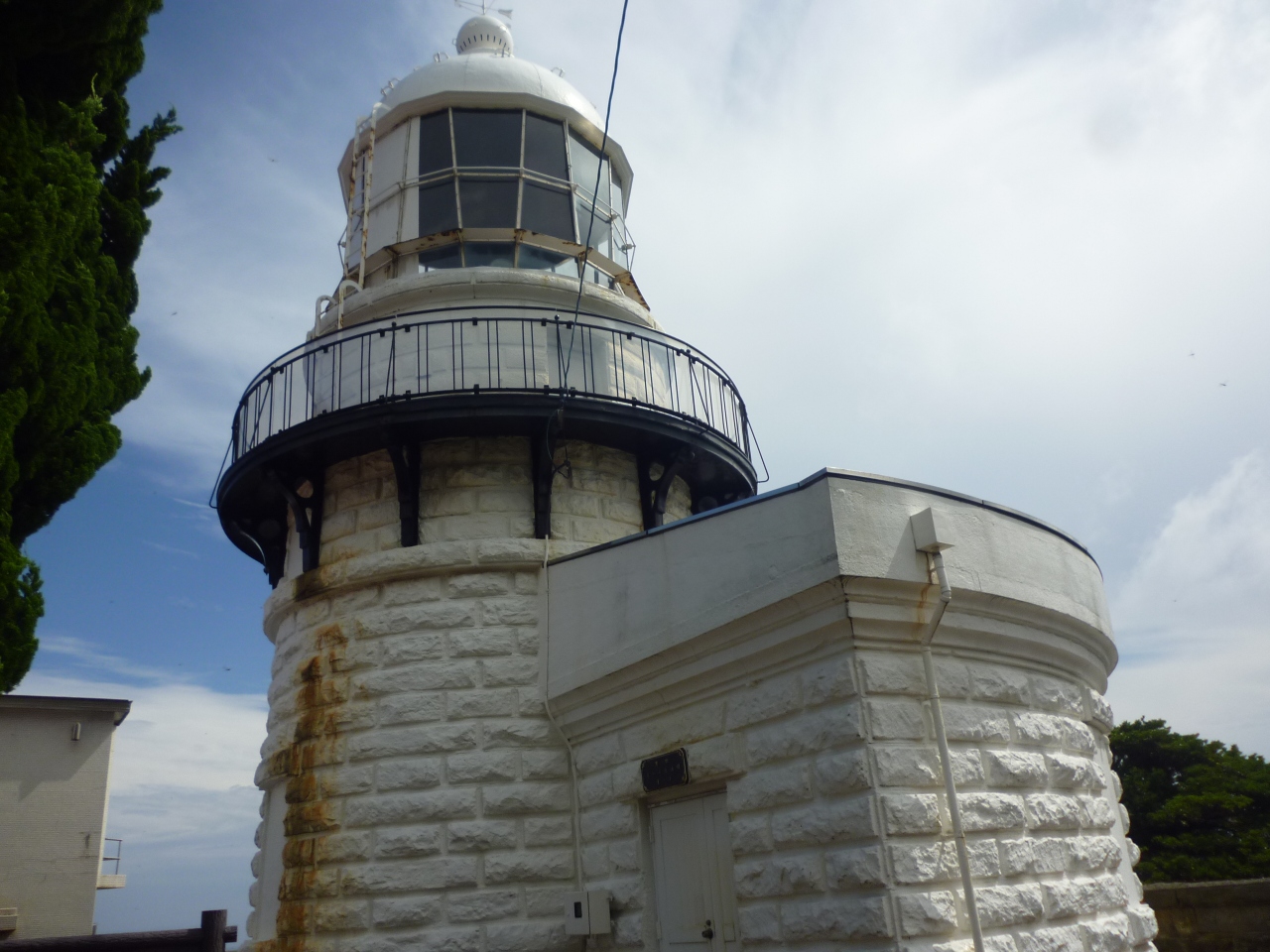 美保関の先端までドライブしました。駐車場に車を止めて、坂を上っていくと、白い灯台が見えました。明治31年に初点灯された、山陰最古の灯台です。「世界の歴史灯台100選」に選ばれています。内部には入れませんでしたが、海の日には、内部が見学できるそうです。