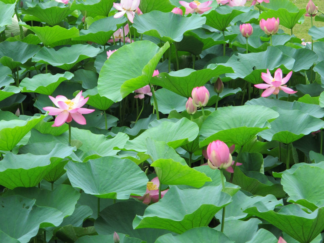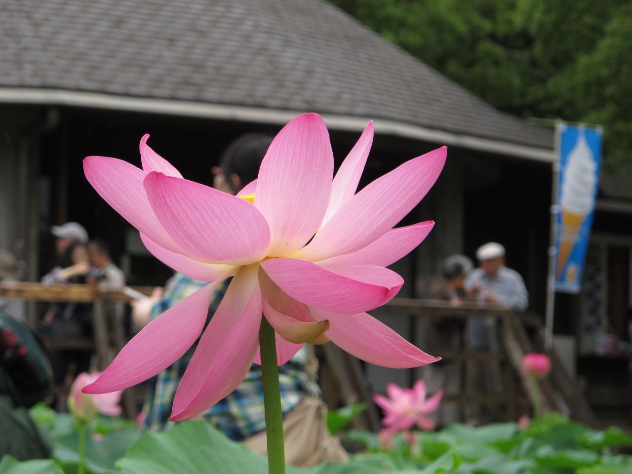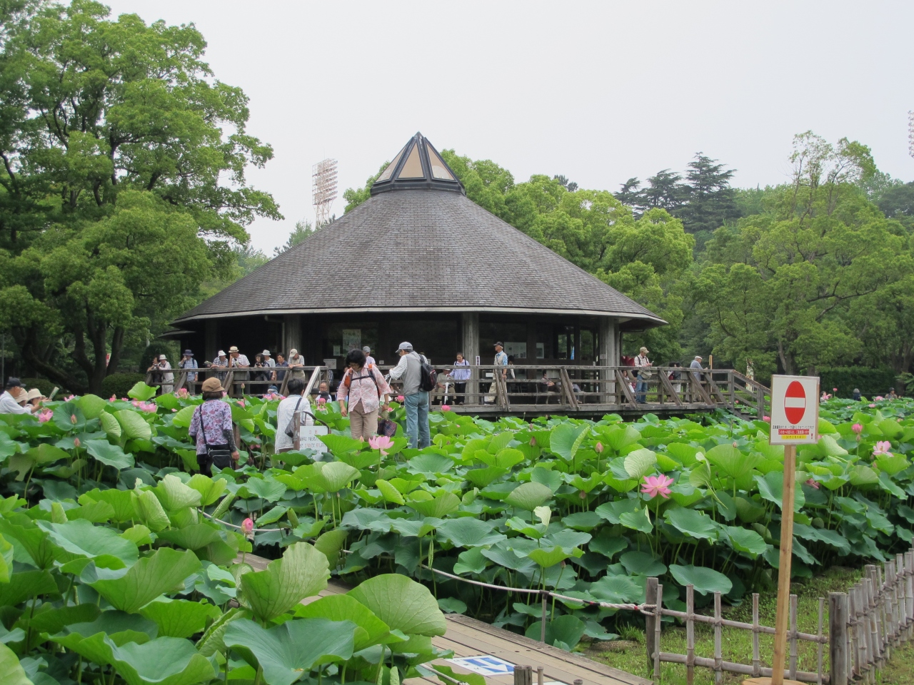曇りがちの6月22日、旬の大賀ハスを観に千葉公園へ。午前11時ごろに公園に到着すると蓮華亭の周りはすでに人の山になっています。「ここは人気のスポットなんだ」とあらためて思いました。園内はとても手入れが良く、蓮池の人道は一方通行にしてあるなど、混み合いながらも気持よく観蓮することが出来ました。