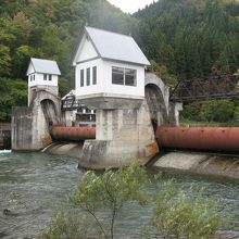 ダムと言っても、一見、ダムらしくない、堤体高約5m、堤頂長約60mの取水堰で、ここで取水された水が、このダムの6〜7km下流にある“東北電力 立石発電所”に送られて発電に使われています。