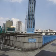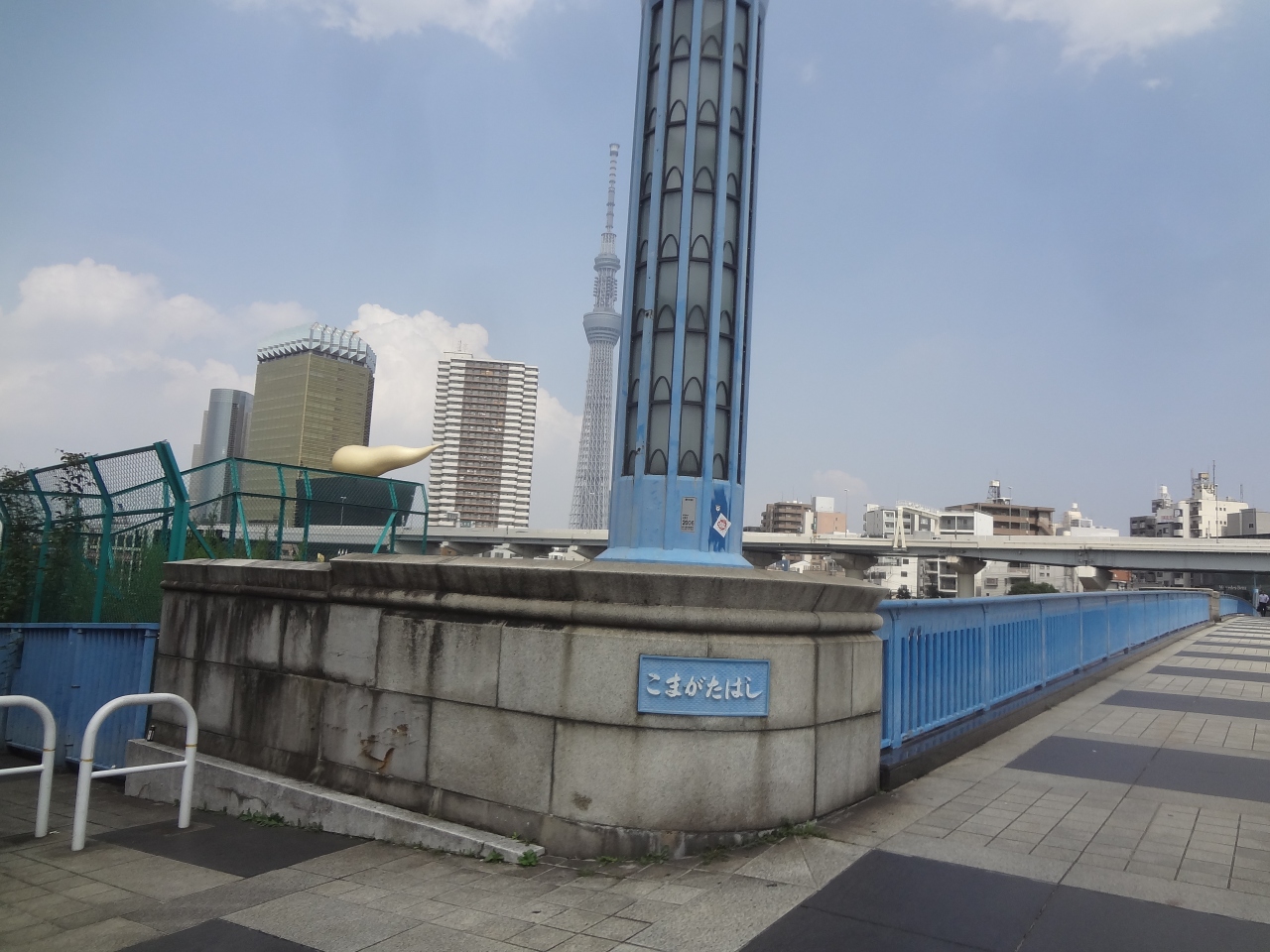 隅田川に架かる橋のひとつです。スカイツリーのビュースポットとして人気の吾妻橋と比べると圧倒的に人がいませんが、ここからでもスカイツリーと独特な金のオブジェを見ることが出来ます。人がいない分こちらのほうが穴場かも。加えてその吾妻橋も一緒に見ることが出来ます。吾妻橋は赤。駒形橋は青。そんな違いも面白いです。