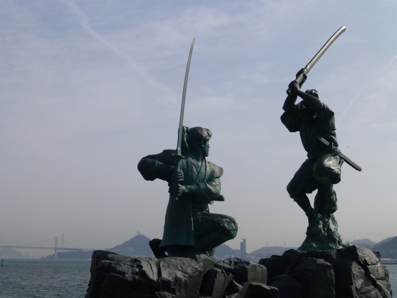 出張で下関まで来ましたで巌流島に寄りました。当時?の男性は、宮本武蔵と佐々木小次郎の決闘=巌流島を知っていました。船で着いたのは意外でした(…武蔵がわざと遅らせたことは承知していましたが、てっきり橋を掛けて島へ渡ると思っていました)。それにしても大きな島ですね。記念?石碑まで10分近く歩きました。石碑をバックに瀬戸内海を前に眺めて当時のことを想いだしていましたョ。。