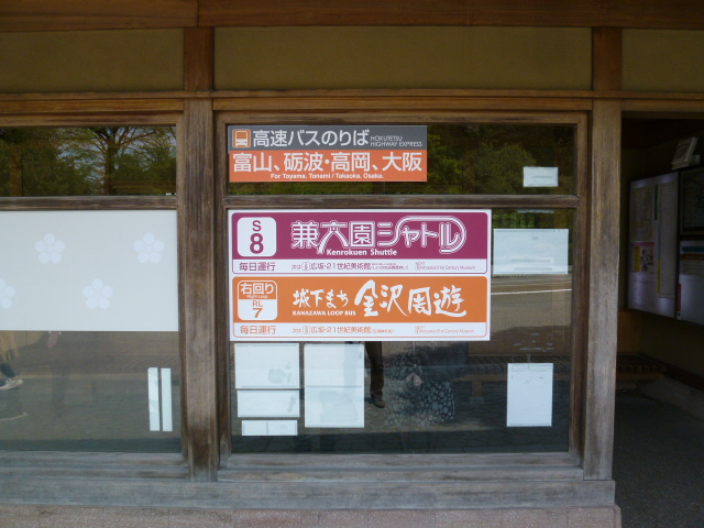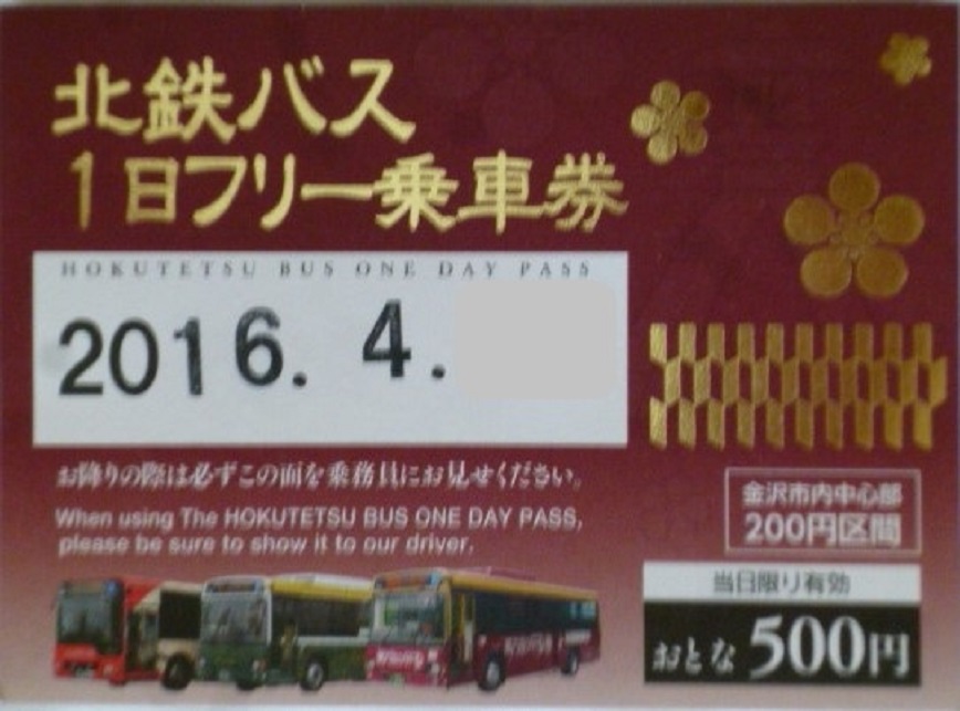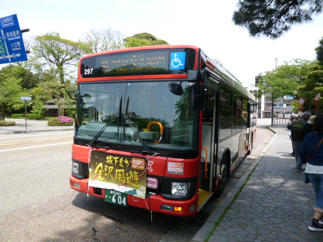 金沢市内主要観光地をめぐる「城下まち金沢周遊バス」はルートも判りやすく安価で利用できます。チケットは金沢駅構内の「金沢市観光案内所」や「東口(兼六園口)バス乗り場」などでも販売していますのでパンフレットを活用して散策することお勧めします。利用者が多いのはいいのですがバス停で並んで乗車して欲しいものですね。マナー守りましょう。