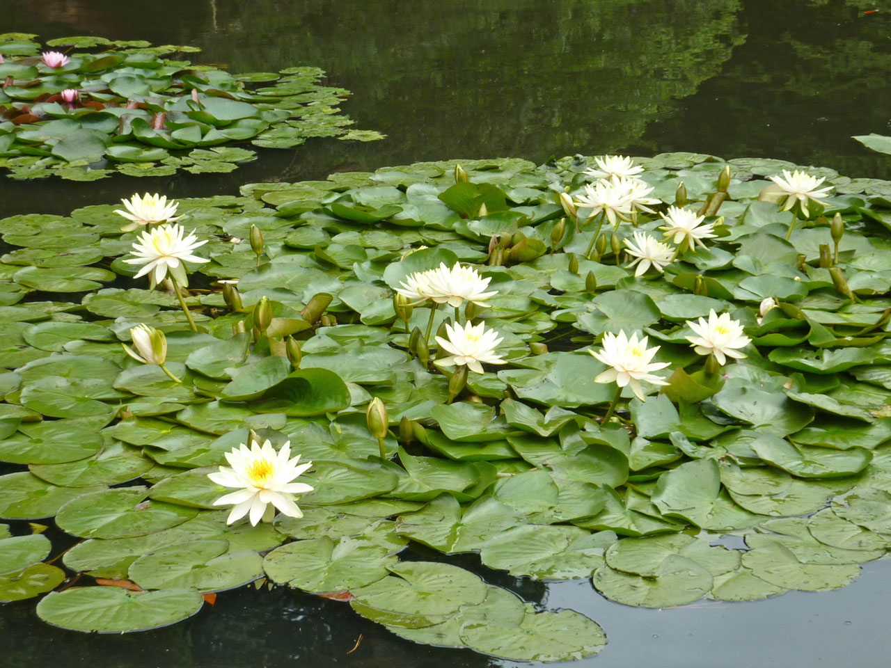 睡蓮の咲く池のある日本庭園があり一休憩。