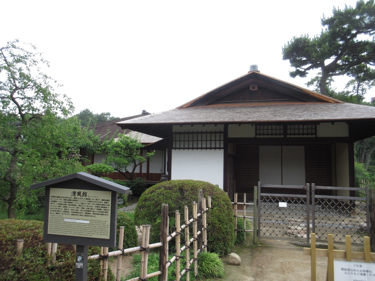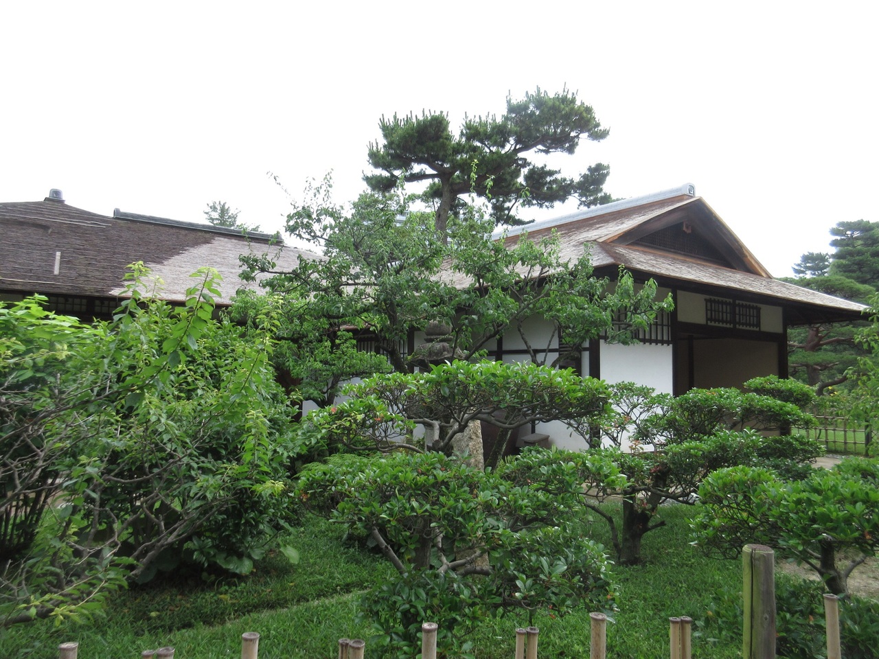 茅葺き屋根、寄棟造り、花頭窓などを持つ