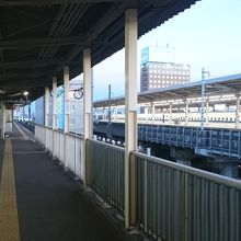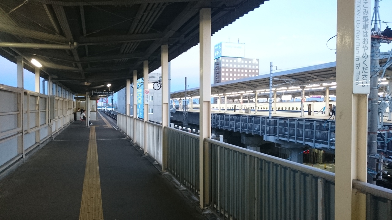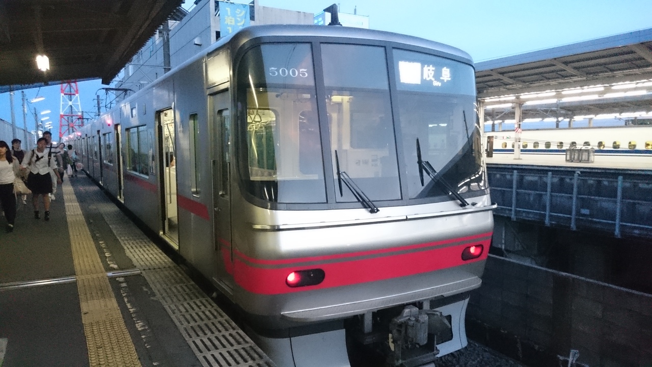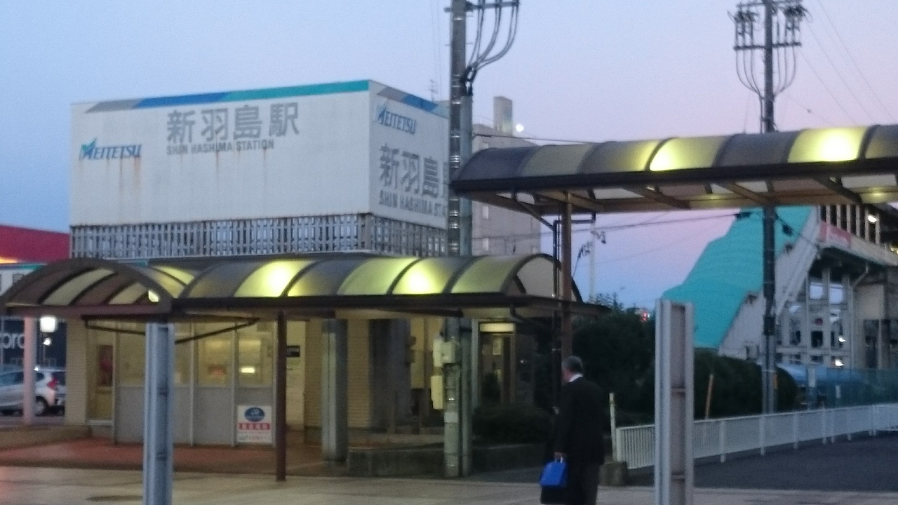 名鉄羽島線の終着駅であり、新幹線岐阜羽島駅との乗換駅。新幹線とのアクセスを目的に作られた路線ですが、実際、岐阜から新幹線に乗る場合、名古屋経由と時間で大差なく、しかも岐阜羽島駅はのぞみ号も止まらないので、新幹線の乗り換え客よりも地元の学生の方が多く使っています。無人駅で、単線のプラットブォーム、しかもホームが狭いので、田舎の駅の雰囲気もありますが、駅は高架てす。新幹線の乗り継ぎ駅なのに、エスカレーターがありません。一時間に4本程度の電車が走り、うち半分は岐阜行きで笠松から急行になります。