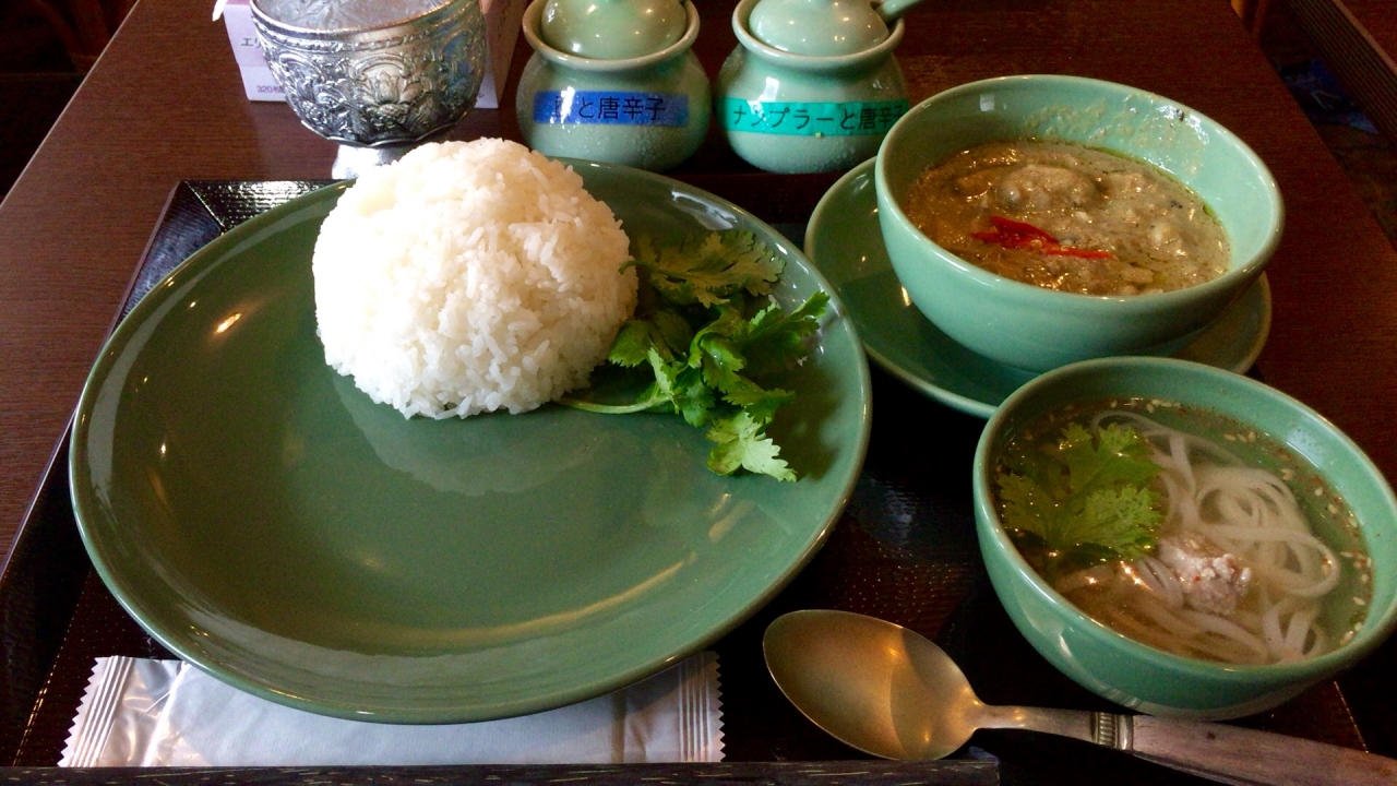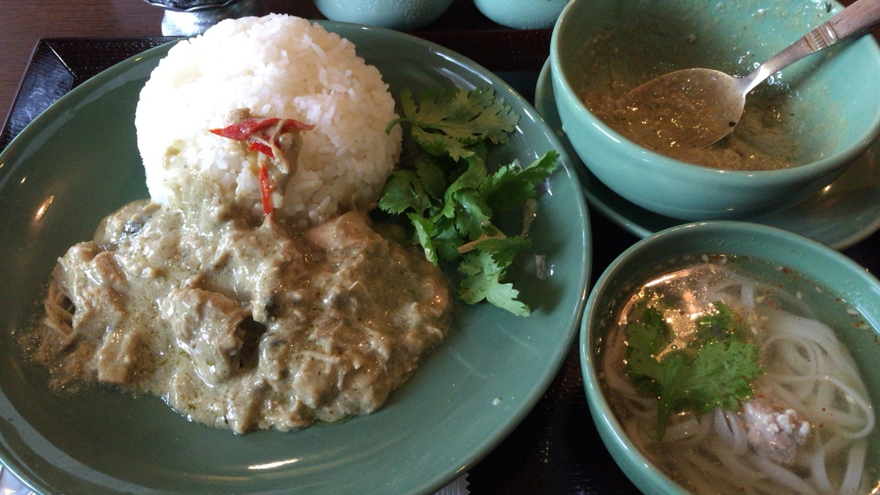 本日は、ランチ3番のグリーンカレーとミニラーメンを頂きました。辛くて汗をかきましたが美味しかったです。