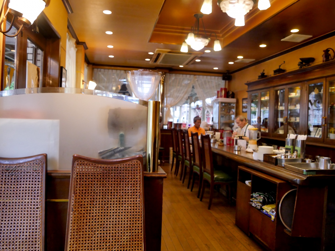 恵比須駅前にあるコーヒーショップ レトロなメニュー ストロングコーヒーとはエスプレッソ コーヒー通という割にはメニューは少ないが,この昔ながらのメニューのコーヒーショップがいい感じ 1970年代という感じだね コーヒーショップのマスターから駅前の天井にツバメが巣を作り,もうすぐスダチだよと教えてもらう.スタバなどが多くなる中マスターとの会話もある昔ながらの店だ