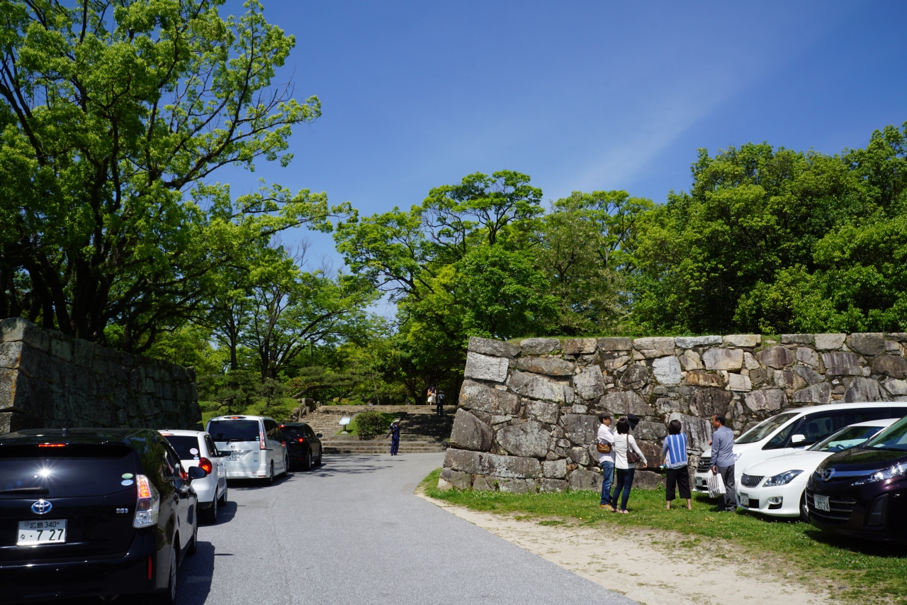 広島城には表御門と裏御門の二つがあって、裏御門は、RCCの方から護国神社の正面に入る側。広島市内の中心部からすると反対側なので、人の通りは少ないですが、こっちは車で入ることが出来るので、車の人には便利な入り口となります。
