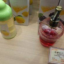 無料でハチミツやジュースが試食でき、色々試すことができる。