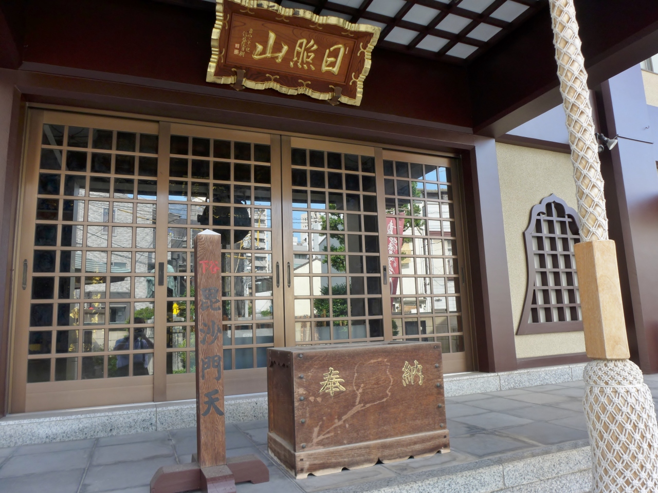 下谷2丁目の路地に建つお寺です。下谷七福神の毘沙門天が祀られているそうで、山門脇に赤い幟が立っていました。
