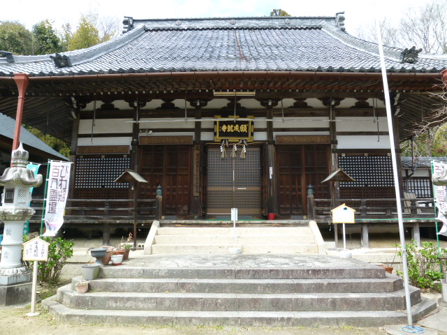 今日は近江八幡に来ています。ここ「願成就寺」は、城跡や堀などの風光明媚な場所から離れていますが、今日は駅でレンタサイクルしたので楽ちんです。到着すると正面には階段がありこれを登って本堂へと行きます。名の由来は聖徳太子の誓願が成就した事から願成就寺とのことです。願成就寺の創建は617年で1400年の歴史があります。すごいですね。平安時代・鎌倉時代など幅広い時代の宝物が保存されていて、十一面観音立像・地蔵菩薩立像が国の重要文化財に指定されています。桜も咲いていま~す。