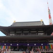 増上寺 大殿の背後には東京タワーをみることができます。その場合、後方から撮影をしていることが多いと思いますが、階段を一段一段のぼり大殿をまじかでみるとその迫力に圧倒されます。