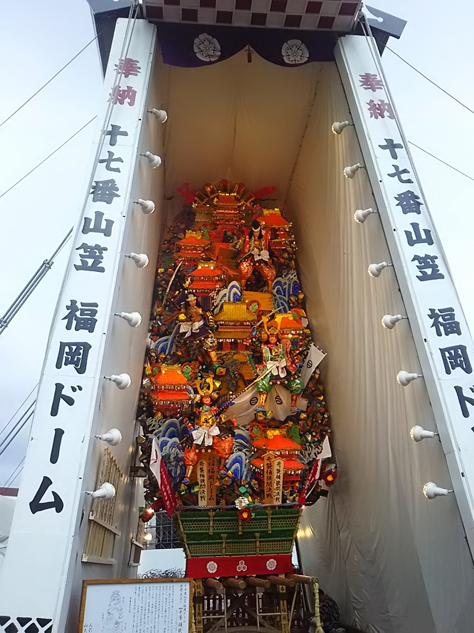 地元のプロ野球チーム「福岡ソフトバンクホークス」のフランチャイズ球場にも「博多祇園山笠」のお祭り期間中(7/1~15)には、飾り山が展示披露されます。