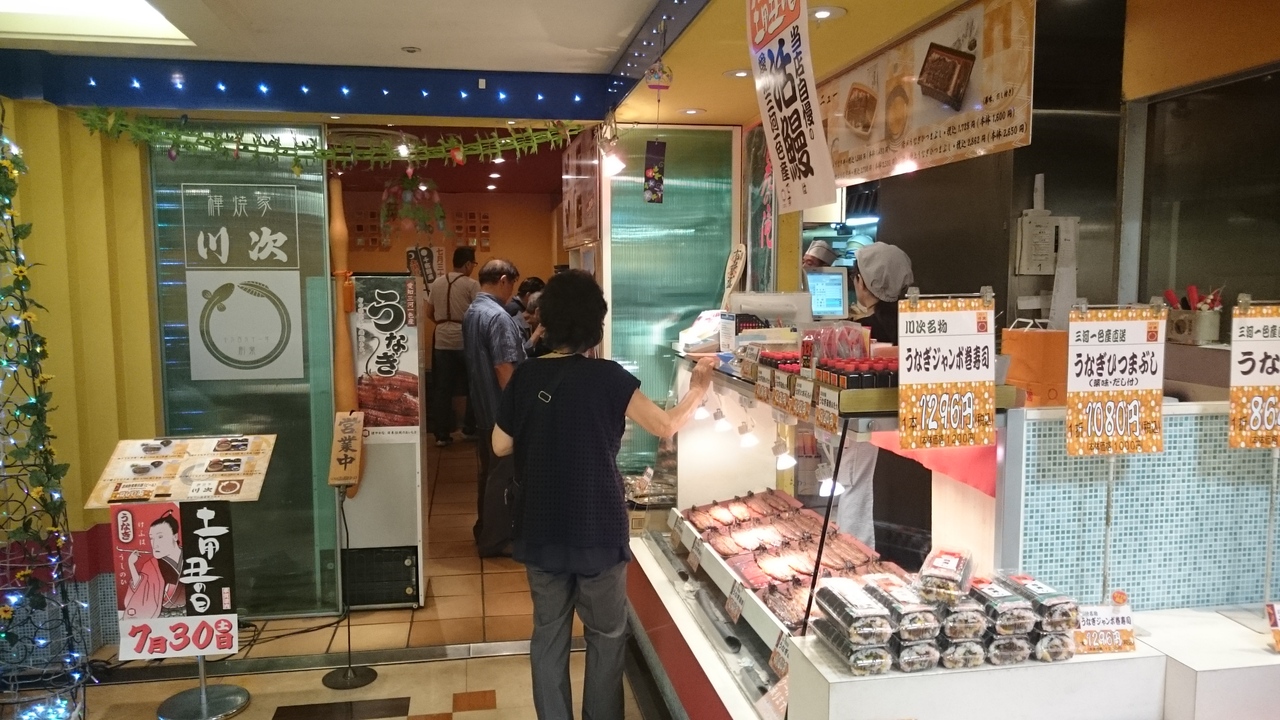 本店は岐阜県養老町にある川魚料理店ですが、名古屋の栄にある丸栄の地下1階に鰻のお店を出しています。鰻の店頭売りがメインのお店ですが、奥の方に、二人用のテーブル席一つ、四人用のテーブル席が二つ、カウンター席が5席あり、鰻丼かひつまぶし等が食べられます。一瞬、カレースタンドかと思ってしまうくらいのお店で、お茶もセルフ。しかし、味は本格的です。小ぶりながらも愛知県一宮産の鰻で、関西風に焼かれており、香ばしく柔らかい。しかも、価格は鰻丼(普通)が1450円。ひつまぶし(普通)が1600円と、リーズナブル。特上もそれぞれ2500円、2650円とお財布にも優しい満足感のある鰻です。周辺のしら河や松坂屋の厚熱田蓬莱軒が尋常ではない混雑にくらべ、待ち時間も短く、庶民はデパート丸栄に入っているだけのこともあります。