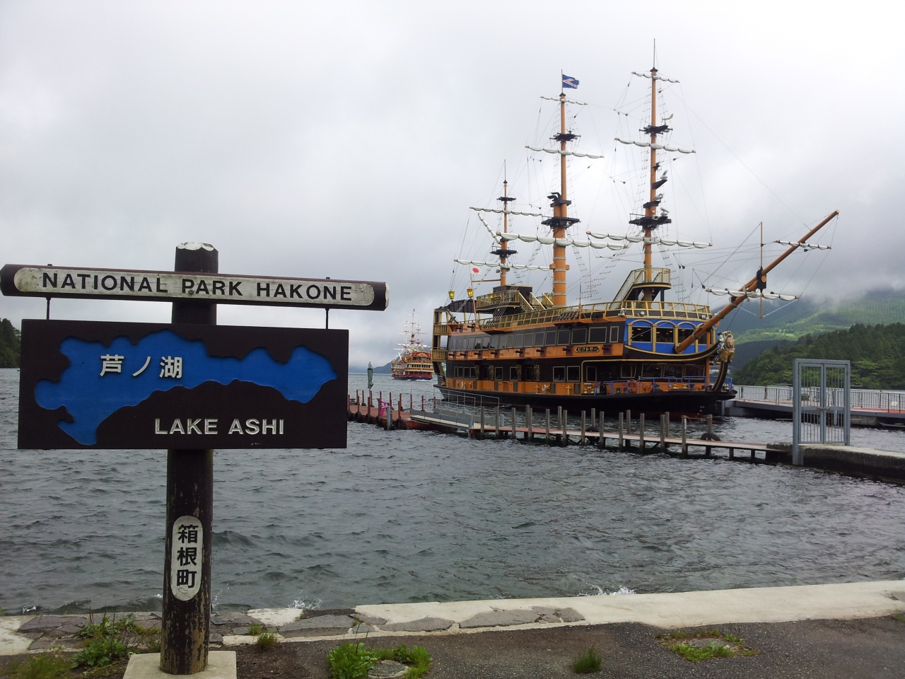 元箱根から海賊船の形の芦ノ湖観光船が出ています。無料駐車場も湖畔にあるので、とても便利です。海賊船は人気のようで、多くの外国人観光客も乗船していました。あいにくの曇天でしたが、晴れた日には綺麗な富士山が見えるので、お勧めです。