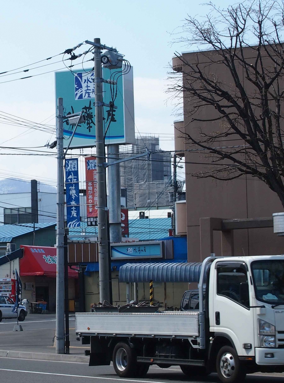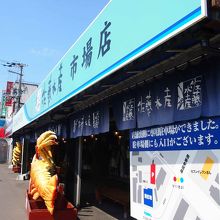札幌市中央卸売市場場外売り場の通りの外れにあります。佐藤水産のブルーの暖簾とエビ・カニの入り口のオブジェが目印です。他の店舗と違って通路も売り場もゆったりしています。強引な接客などもなく助かります。干物・珍味・冷凍品が充実していました。