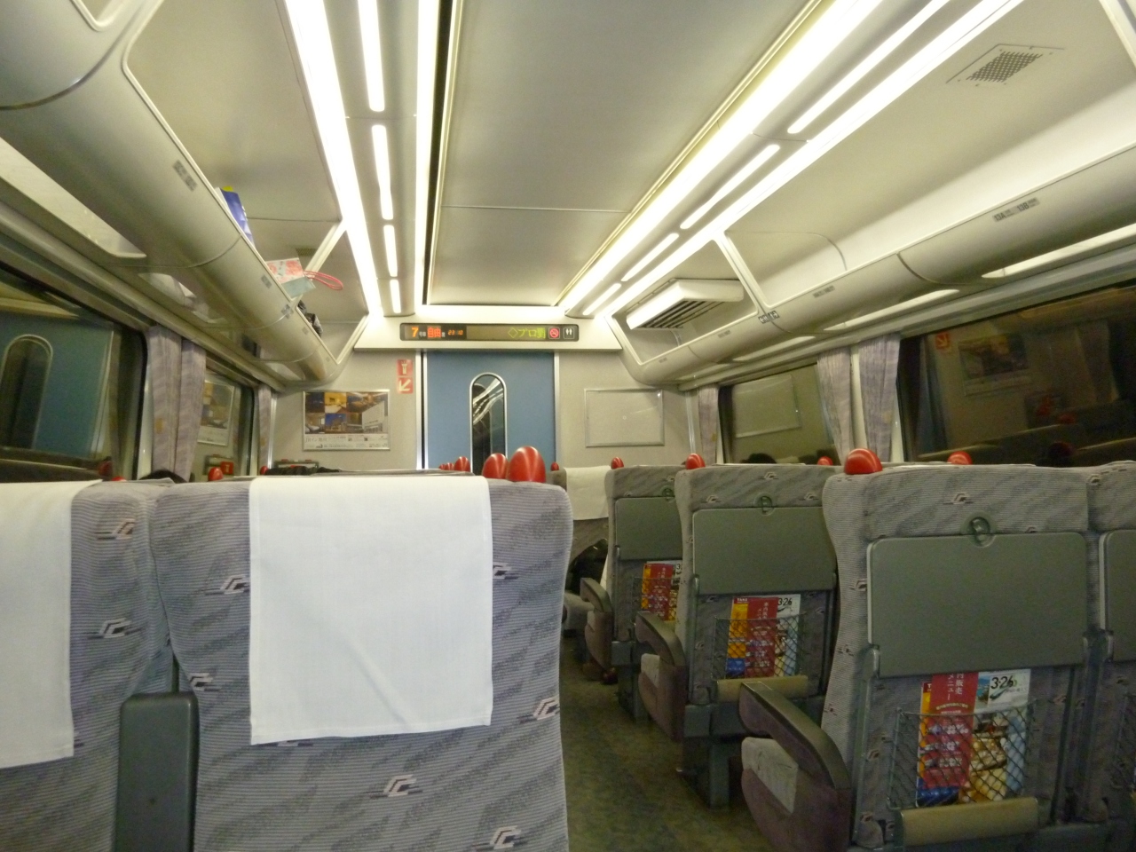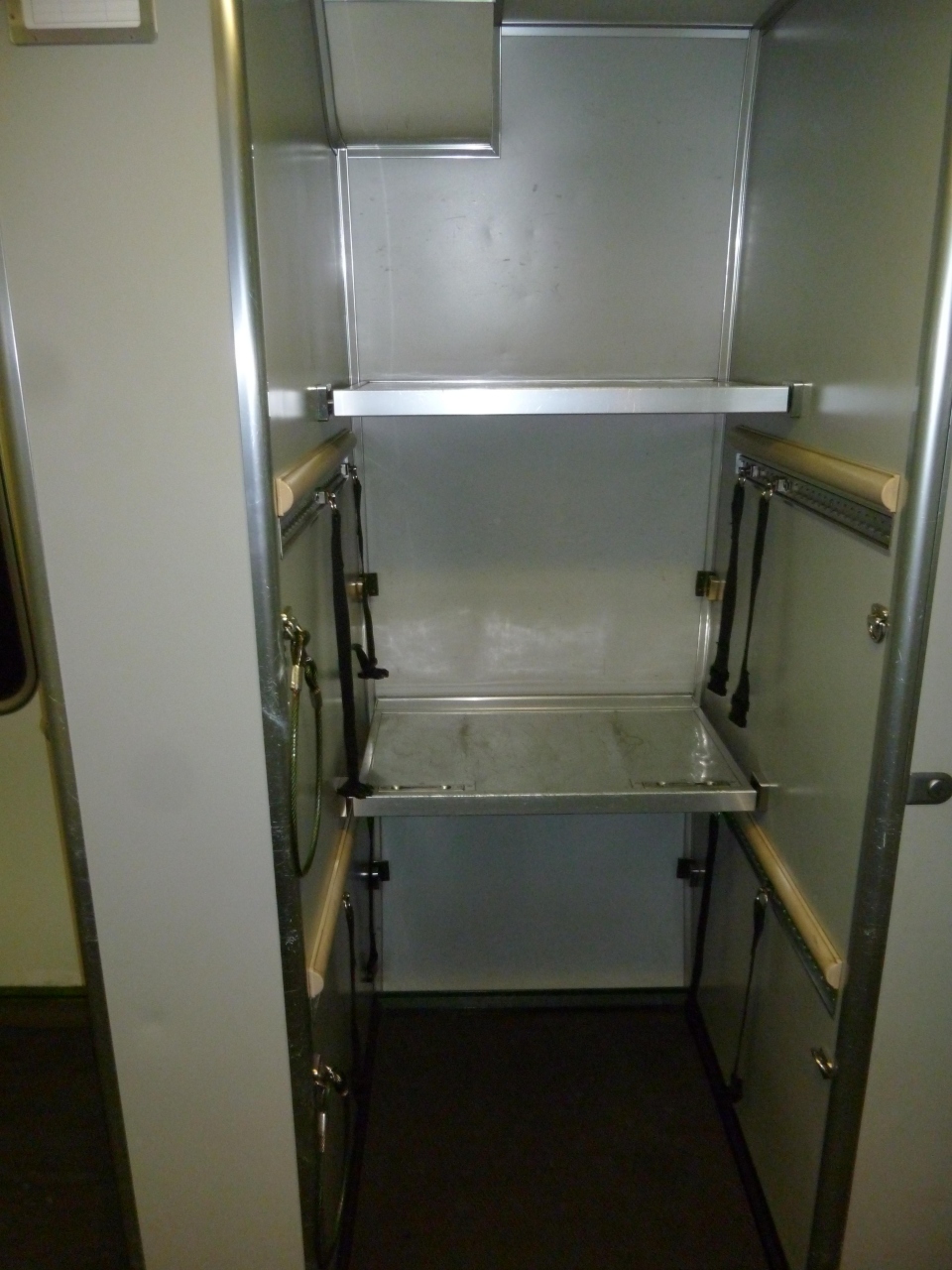 車内には荷物置き場も有りますし、売店やカウンターコーナーも設置してました。