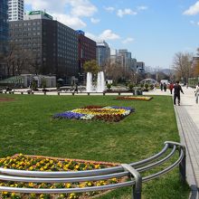 久々に大通公園を東西に歩いて見ましたが全長は1.5キロメートルほどだそうですね。もう少し長いと思ってました。テレビ塔(大通西1丁目)から札幌市資料館の手前(大通西12丁目)まで歩きました。駅前通からの西3丁目~西5丁目あたりの噴水や花壇のある付近が最も大通公園らしい感じがします。