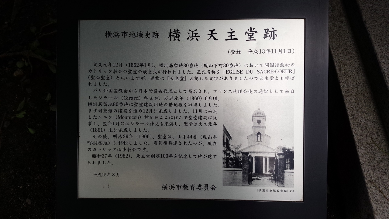 横浜最初のキリスト教会で、現在は場所を移して山手教会になっていますが、記念碑だけ残っています。