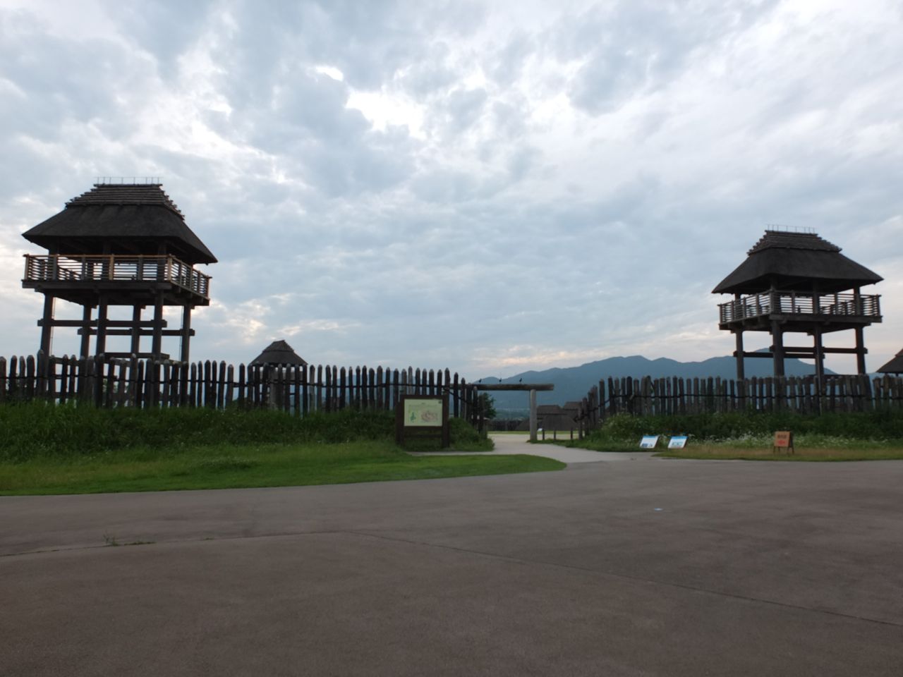 環濠にかこまれた「内郭」には4本の櫓と10軒程度の居宅があります。櫓は1本が上れないようになっていました。上ることのできる櫓も階段は狭いので譲り合って。