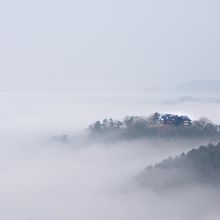 天守閣は小松山の山頂に建てられており、天守に登るには、8合目から徒歩で登らなければならず、20分程で天守に着く。