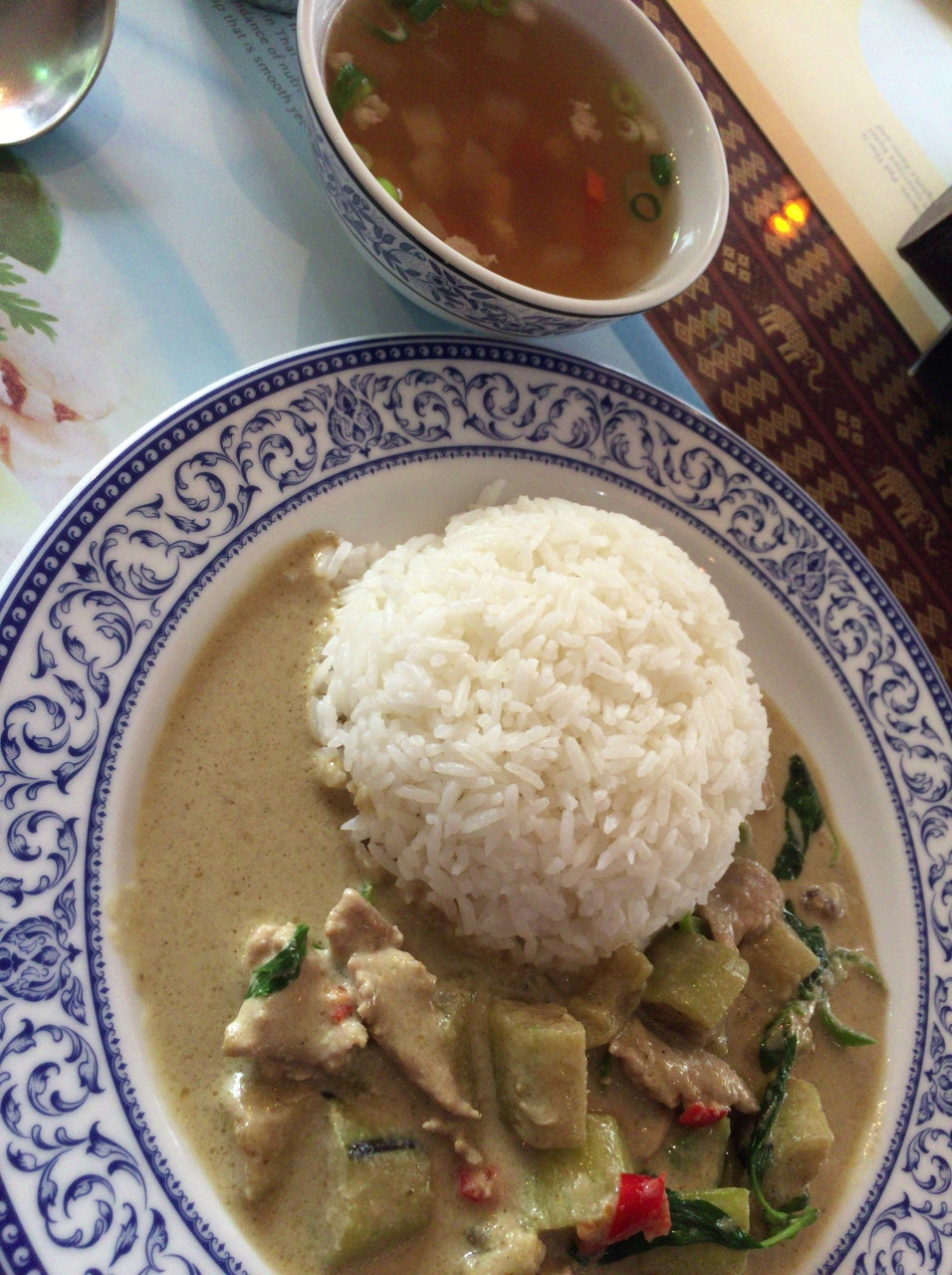 グリーンカレーはまったく辛くなく、拍子抜けです。ココナッツの甘さが前面に出てきます。公認を取るために日本人向けにアレンジしたのでしょうか。
