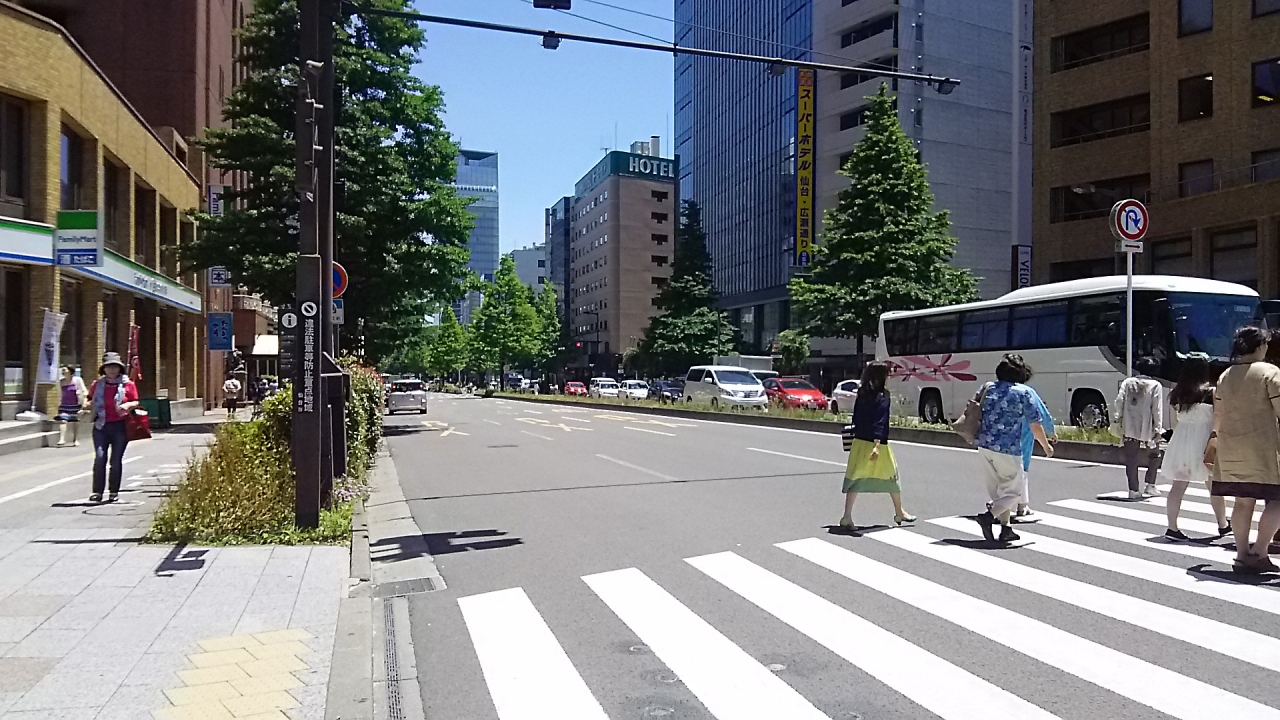 青葉通りと交わる辺りは 百貨店や ホテル 飲食店などがあり にぎわっています