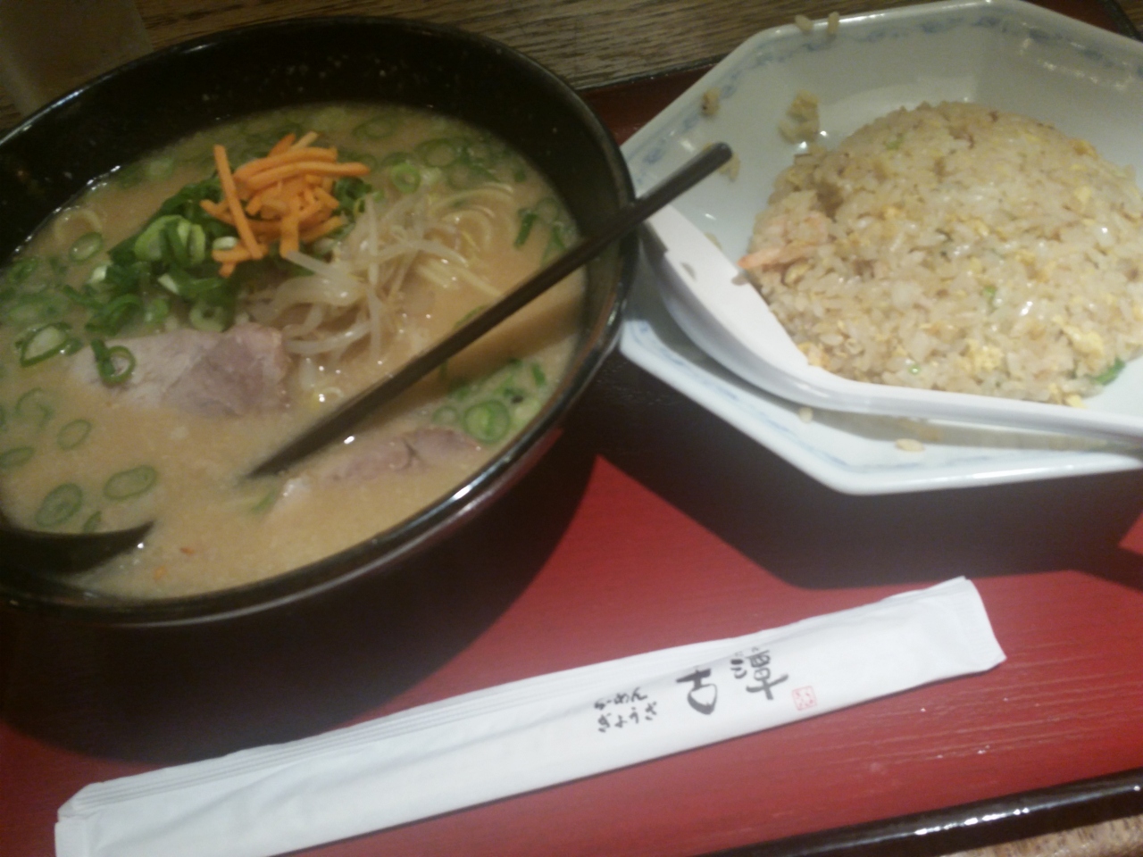 梅田プラザモータープールから夜行バスに乗るということで、それまでの時間に夕ご飯を食べる目的で来店。かっぱ横丁にあるお店。ラーメンはしょうゆ・みそ・塩の3種から選べるが、この日は塩が売り切れていた。炒飯セットは900円前後。味によって値段が違う。安い順からしょうゆ→みそ→塩。接客は良くも悪くもなく普通。