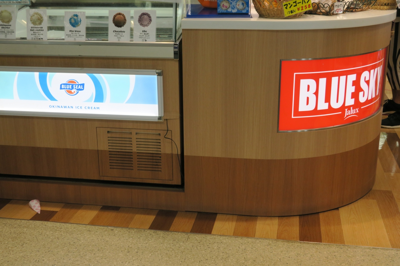 搭乗口の目の前にあり,飛行機に乗る前に軽食を食べるのにちょうどいい感じのお店です.お約束のブルーシールアイスクリームをはじめ,沖縄そば,そしてなぜか札幌ラーメンや讃岐うどんもあります.弁当類の購入も可能です.