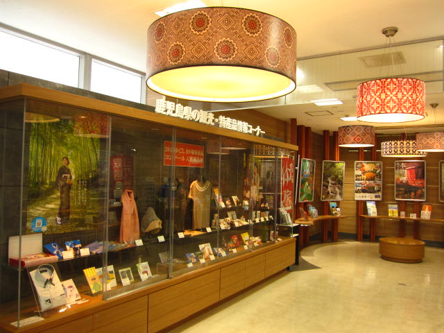 鹿児島空港の1階到着ロビーに鹿児島県の観光・物産情報コーナーがあります。鹿児島各地のパンフレット類が揃っていますので、鹿児島空港を離れる前に立ち寄るといいと思います。特産品の展示も行っているので覗いてみては。
