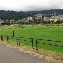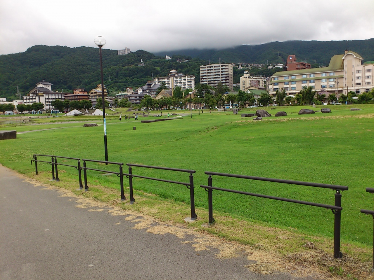 名前の通り諏訪湖畔に広がる公園です。諏訪大社下社秋宮へ車で向かう途中に駐車場があったので、立ち寄ってみました。遊覧船の発着場がありました。芝生の広場では、石で出来たオブジェが置枯れています。地元の方が太極拳などをしていて、のどかな雰囲気でした。