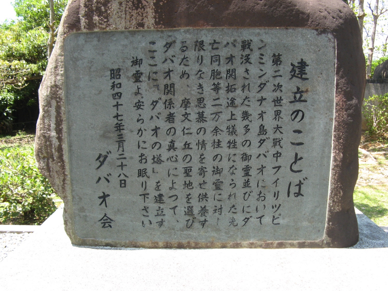 フィリッピンミンダナオ島ダバオで戦没された方々の御霊をお祀りされています