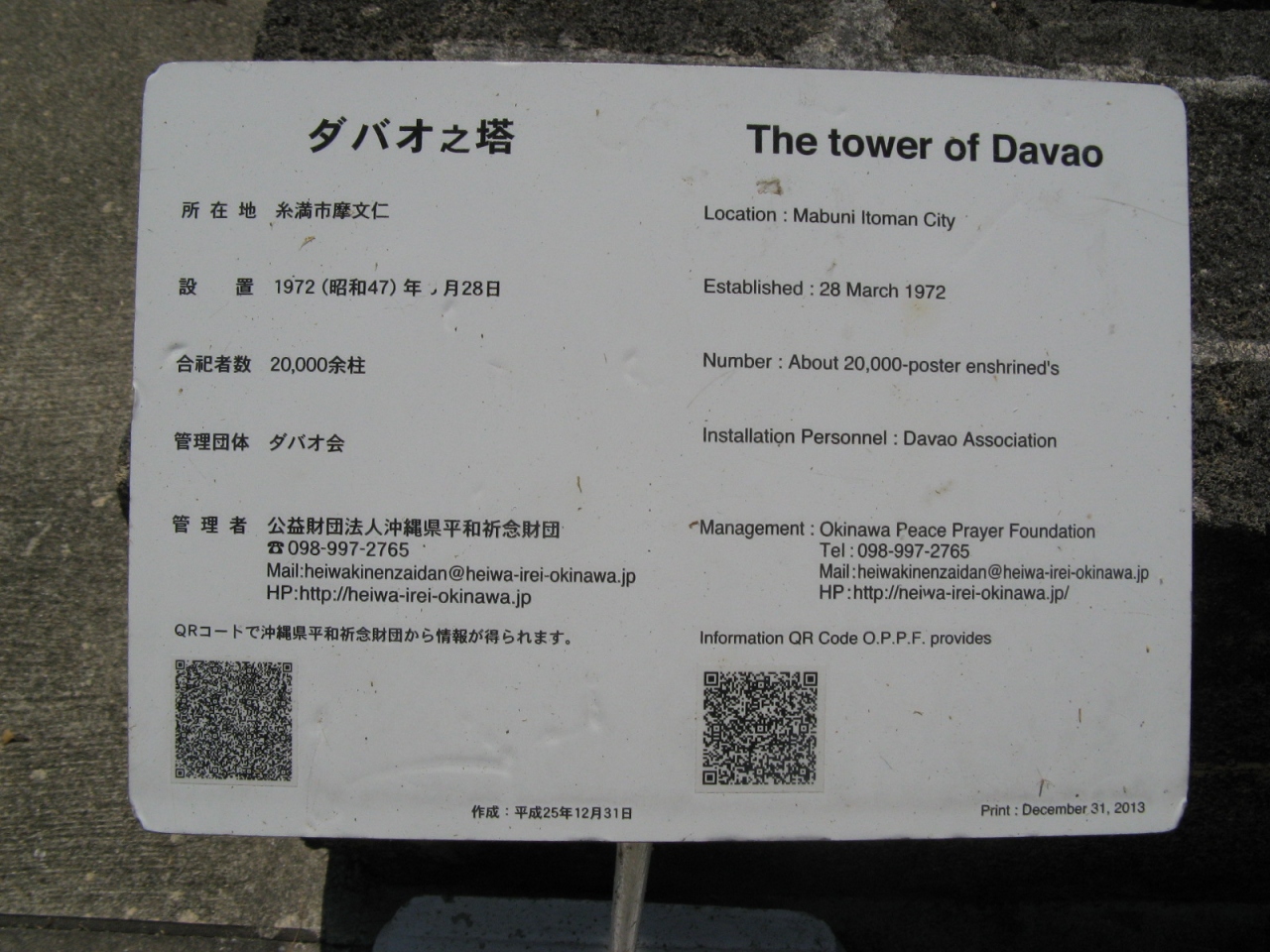 塔の入り口には、QRコードで、沖縄県平和記念財団から情報を得られるようになっているので、参考にされるとよいでしょう。