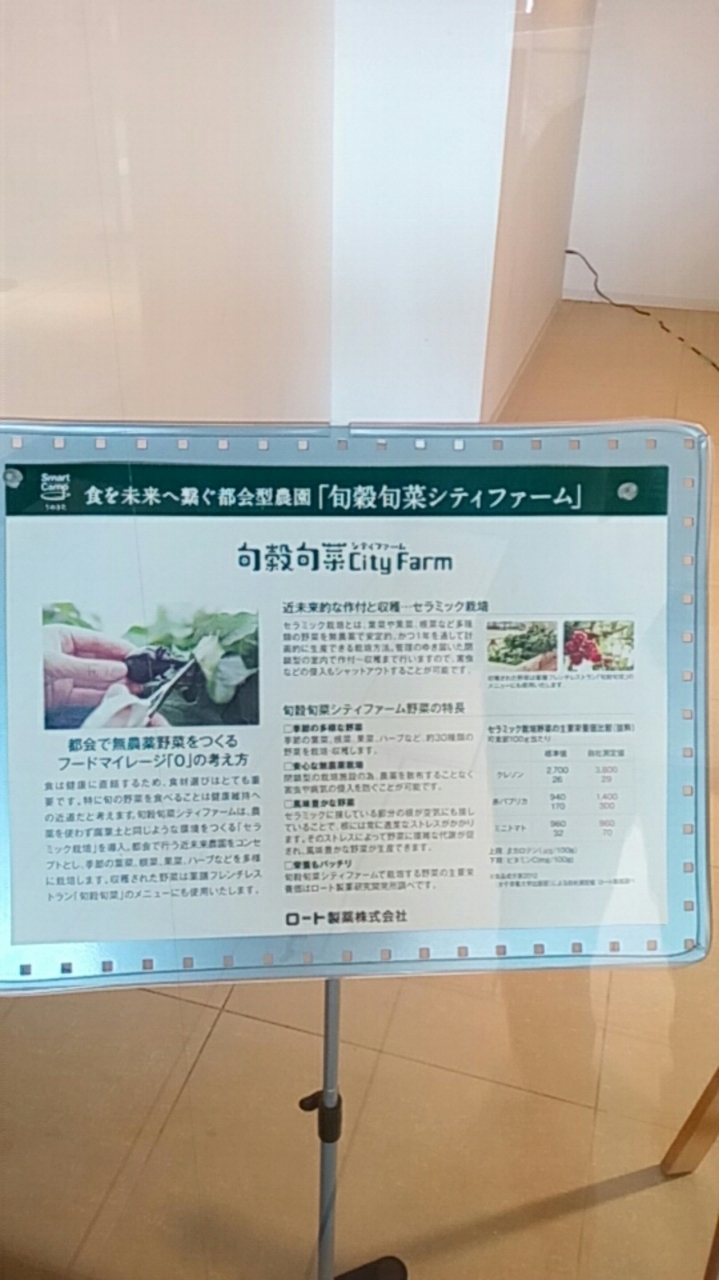 グランフロント大阪北館のナレッジキャピタルの6階にあります。ローと製薬で施設で都市で無農薬野菜を作りいわゆるフードマイレージを減らそうという試みなどが紹介されています。作られた食品は併設のレストランで提供されています。あと何日で食べれるなどの情報も提示されていて近場の方なら変化をみるのも楽しいかもしれません。
