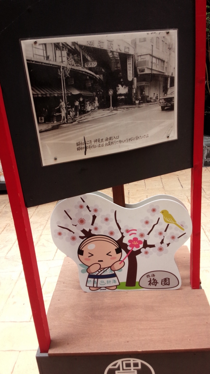 通りが広目なのを利用してまん中にベンチが用意されひと休みしながら昔の最盛期の熱海の様子を伝える写真を見て買い物以外にも訪れる観光客が楽しめる様に工夫されていると感じました