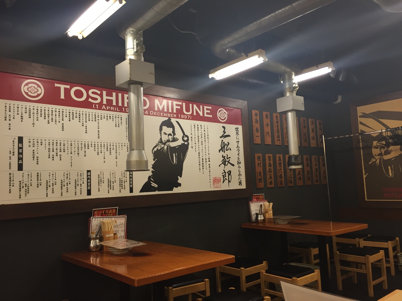 お店は世界の三船の歴代出演映画などが書いてあります。個人的にはドーナツと言われる豚の軟骨が好きで毎回3人前とか頼みます。