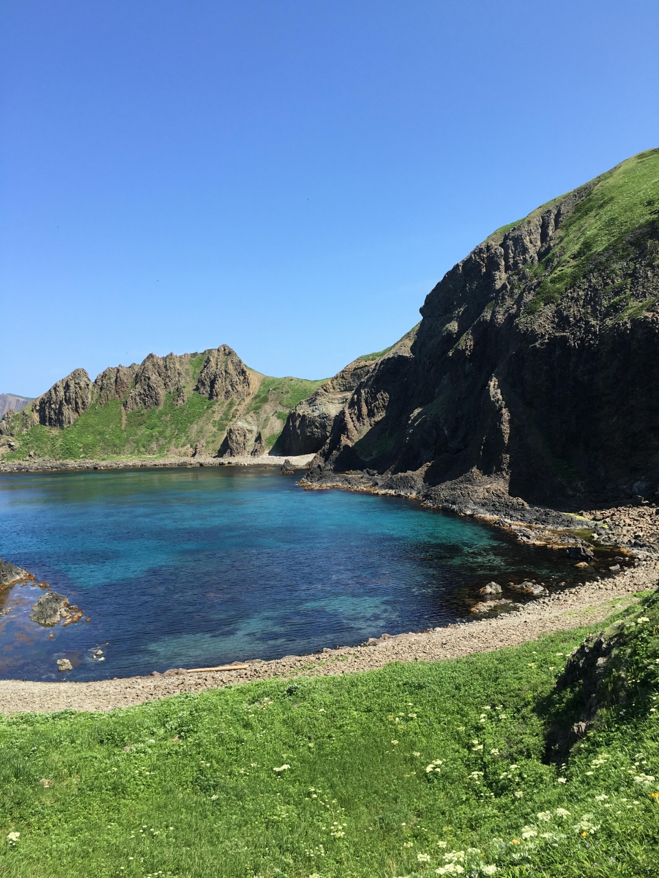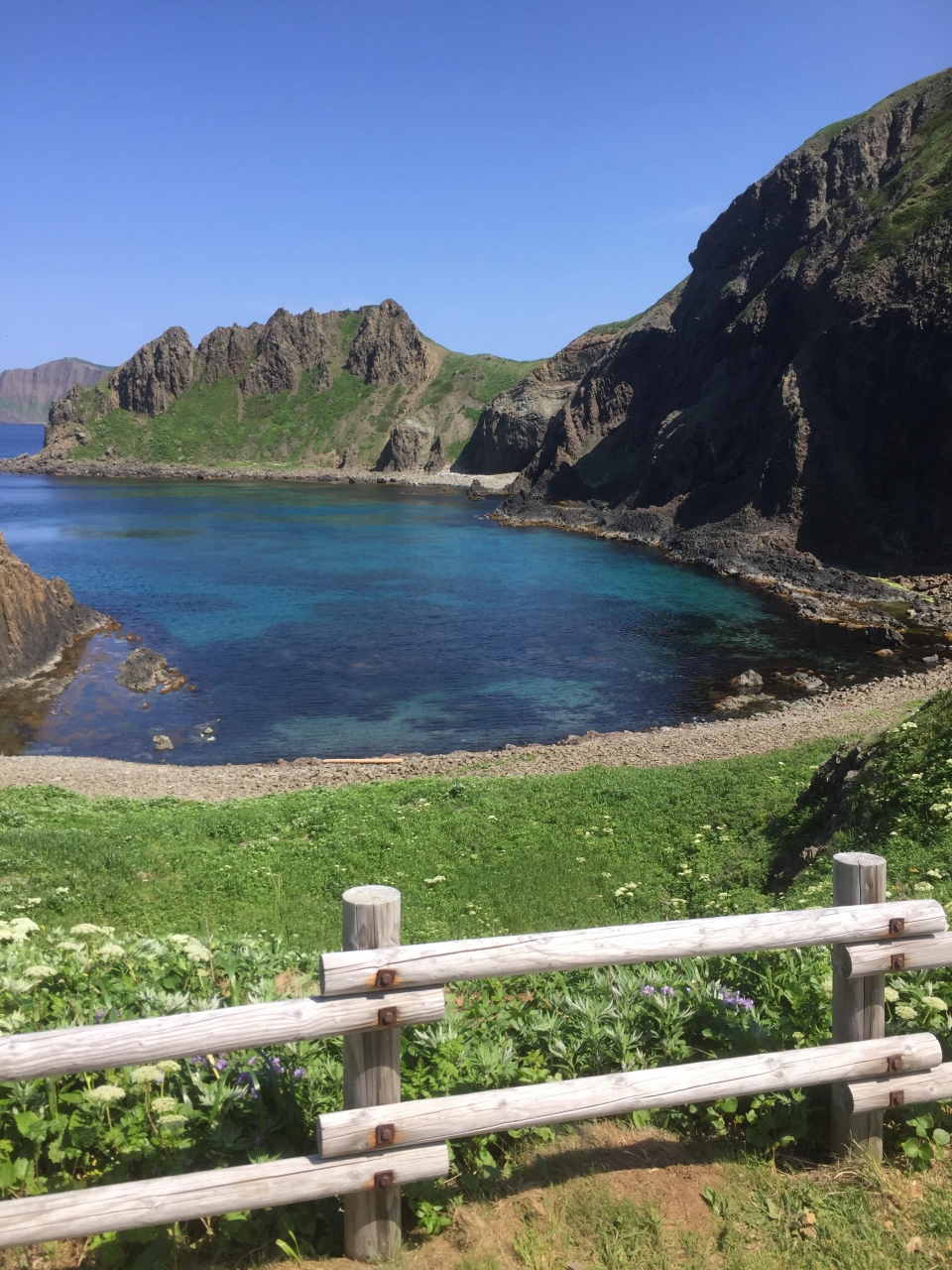 定期観光バスで訪れました。礼文観光の目玉スポットです。港の駐車場から4分くらい坂を上がると絶景が目の前に現れます。坂の途中高山植物が咲いていて、ガイドさんが説明してくれました。晴天で海の蒼がきれいでした。天候に左右される景勝地です。