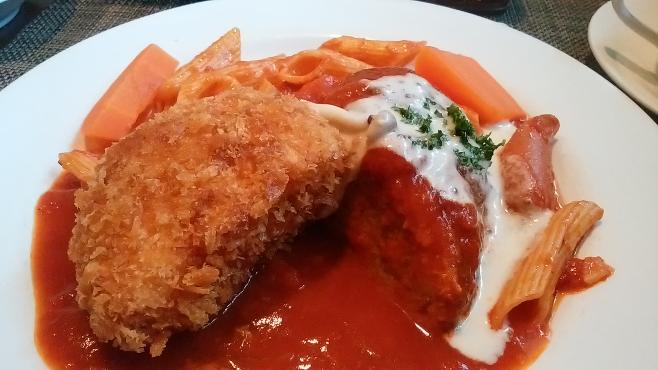 ランチプレートでカニクリームコロッケとハンバーグのセットを注文。