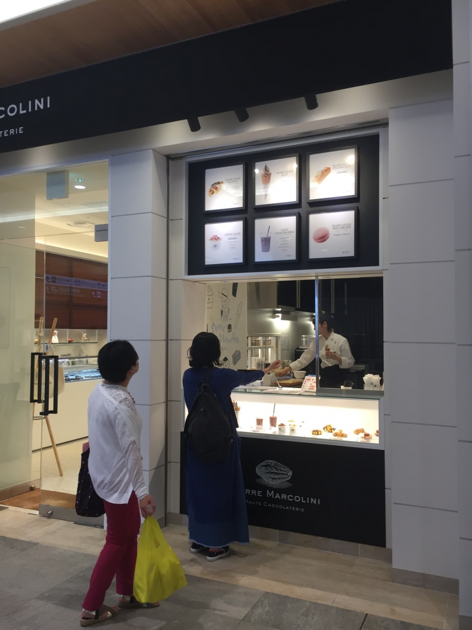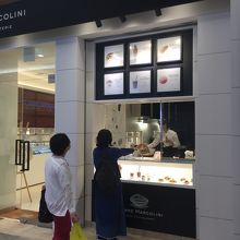 ニュウマンの改札を出たエリアにあります。テイクアウトの洋菓子のコーナーとソフトクリームやドリンクなどの注文カウンターとに分かれていました。店内に食べるスペースはありませんが、付近にはベンチがあります。ここのマカロンはしっとりしていてとても美味しいです。お土産にも喜ばれると思います。