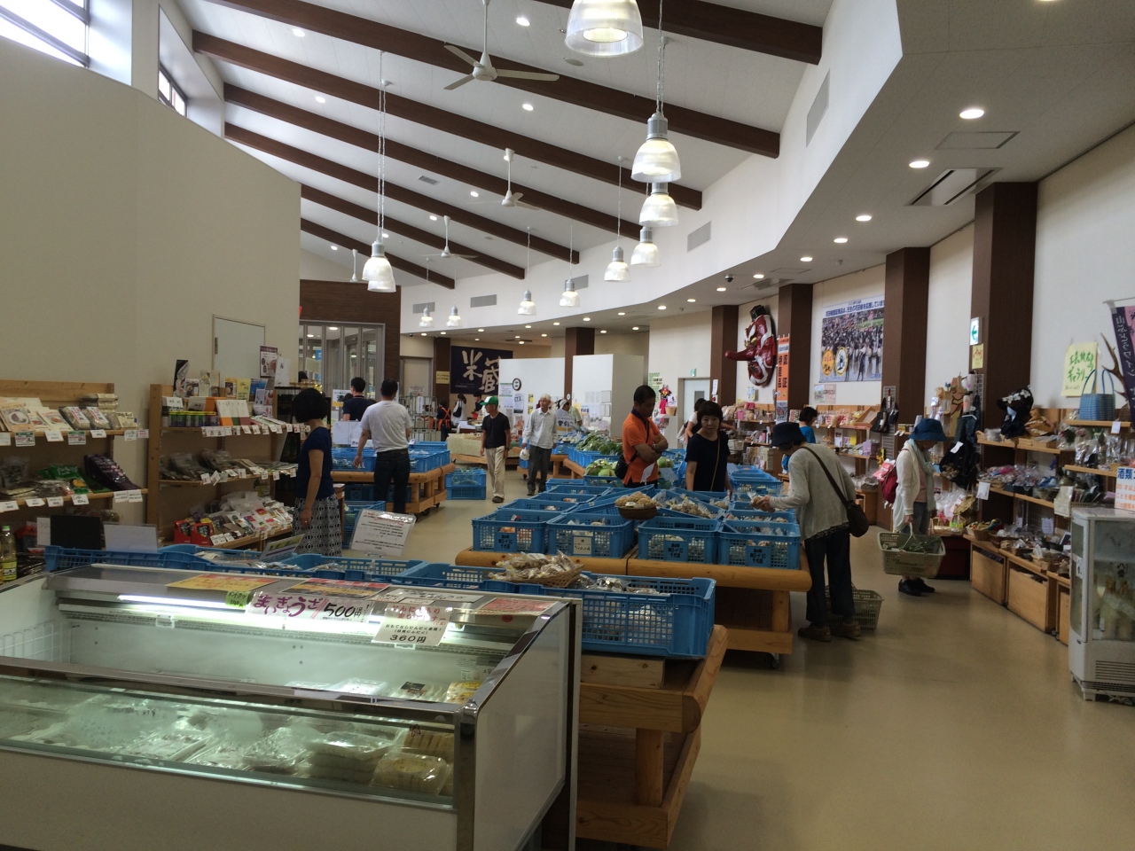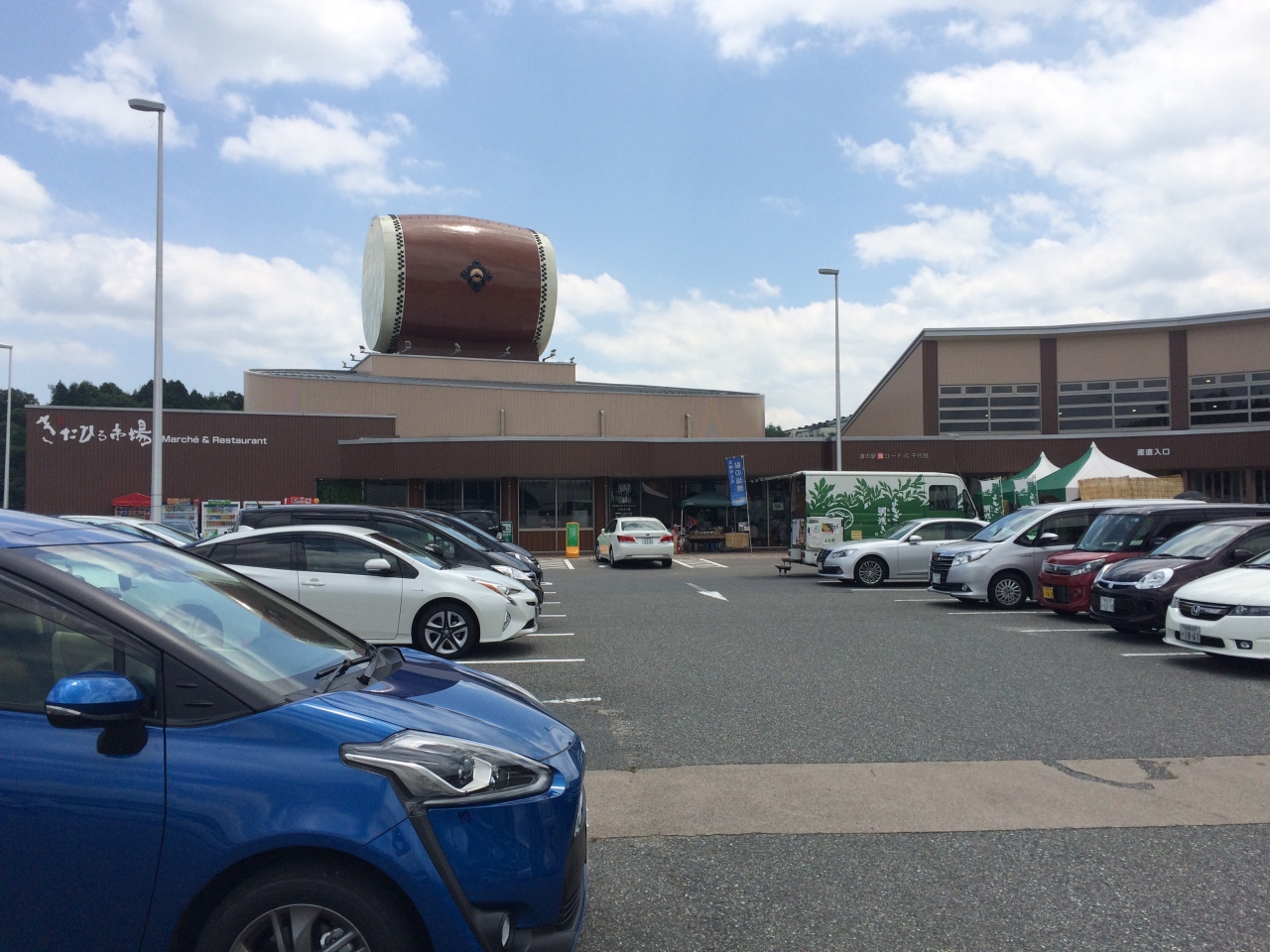 ゴルフ仲間に聞いたヘルシーバイキングレストラン響のある道の駅舞ロードを目指してドライブと観光を兼ねて訪問。高速を利用せず一般道で1時間40分かかり午前11時20分に着きましたが食事の待ち時間が1時間30分もあり、道の駅で時間をつぶしました。観光情報は入口右のたてもので北広島の観光案内がありました。また、正面の屋根に巨大な太鼓がある建物の左がレストラン、右がきたひろ市場で、野菜を中心にお菓子やお土産が沢山並んでいました。値段もリーズナブルで、今話題の黒ニンニクがありましたが小粒4個が650円、大粒が1000円と高かったです。私達は赤しそ、ナス、キュウリ、わらびもち等を買いましたが、新鮮で美味しそうな野菜が多かったです。