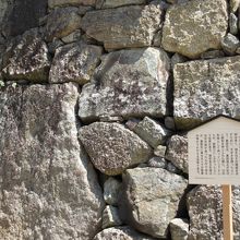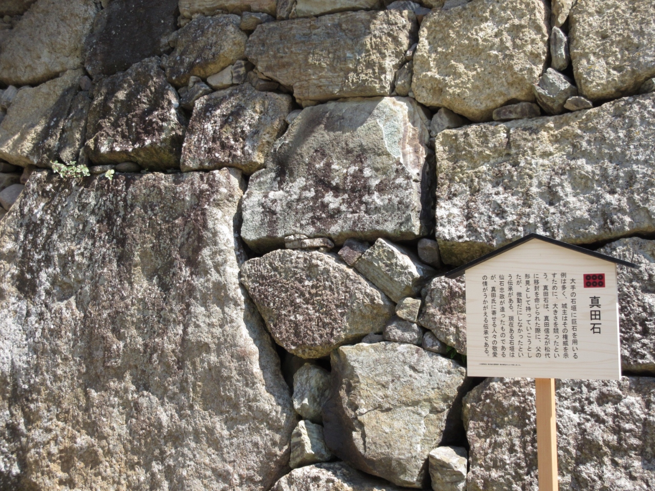 上田城本丸東虎口櫓門の正面右手の石垣にあります。多くの人が立ち止まっているので見逃すことはないでしょう。