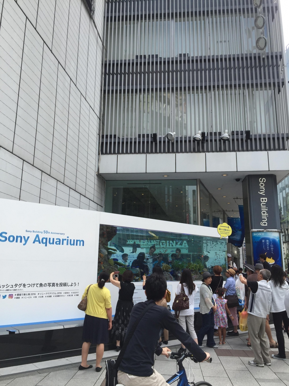 建て替えが決まったソニービルです。現在のビルは2017年3月末で営業終了です。館内はソニーのショールームも兼ねていて、最新のソニー製品を展示していたりして、外国人にも人気でした。訪れたときには毎年恒例のアクアリウムが開催されていて、これも今年が最後になるのかもしれません。跡地は一旦公園になって、その後新しいビルを建てるそうですが、今のビルがなくなるのは、ちょっと寂しい気もします。