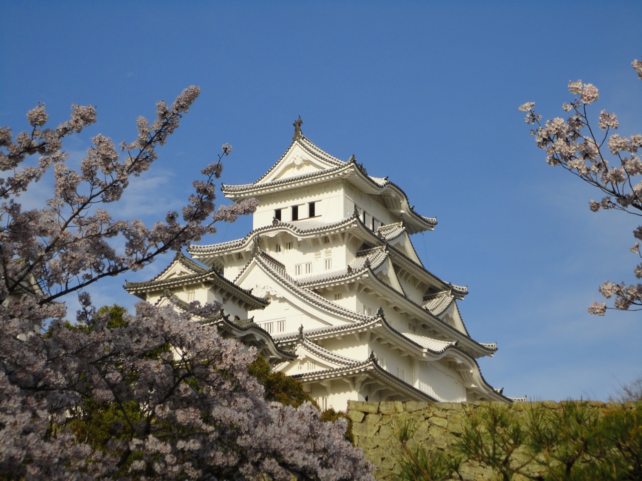 - 空の青色と桜のピンク色と姫路城の白色がベストマッチ