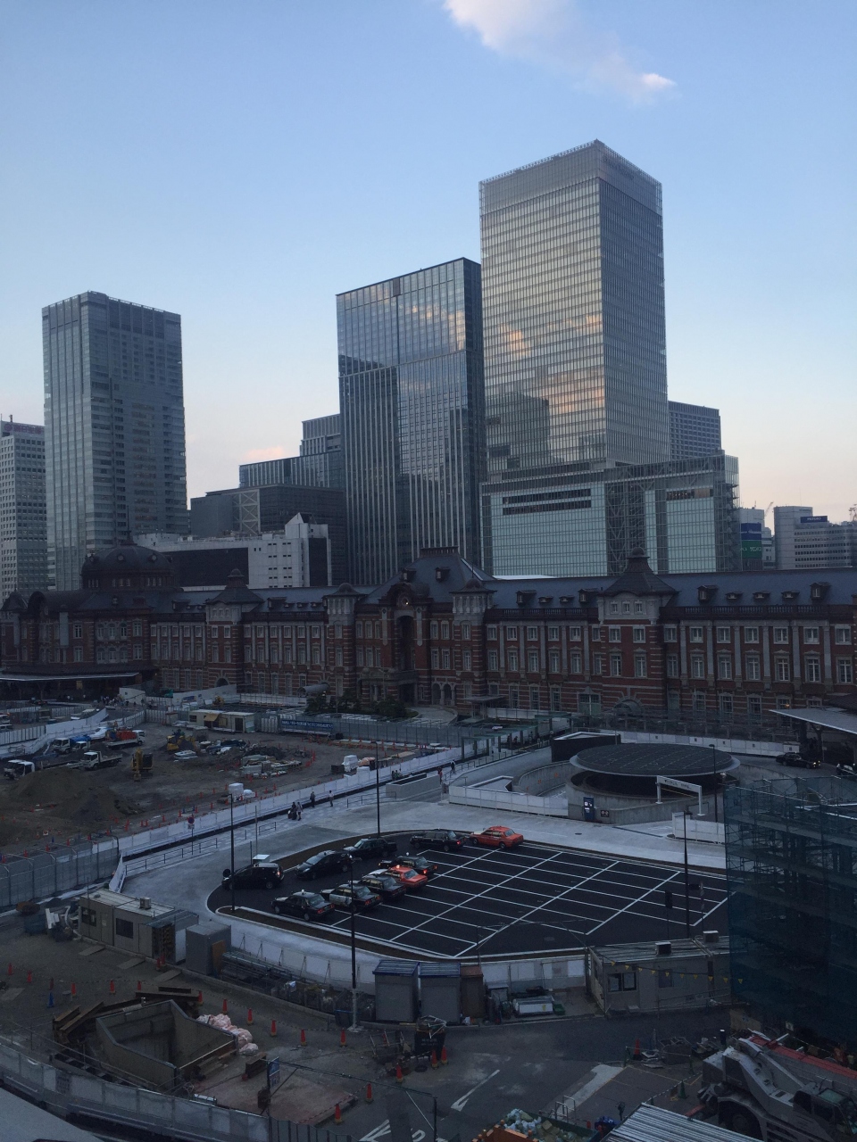 向かいの丸ビル5階にあるビューポイントを眺めてみました。開業当初の外観は建て替えたものの歴史的建造物の雰囲気を醸し出して見事です。またその後ろにある高層ビル群との対照的な感じが良かったです。ひとつ残念だったのは、駅前が大規模工事状態だったことです。将来的には駅前広場として整備される予定だそうですが、工事の規模からするとまだ先のように感じました。