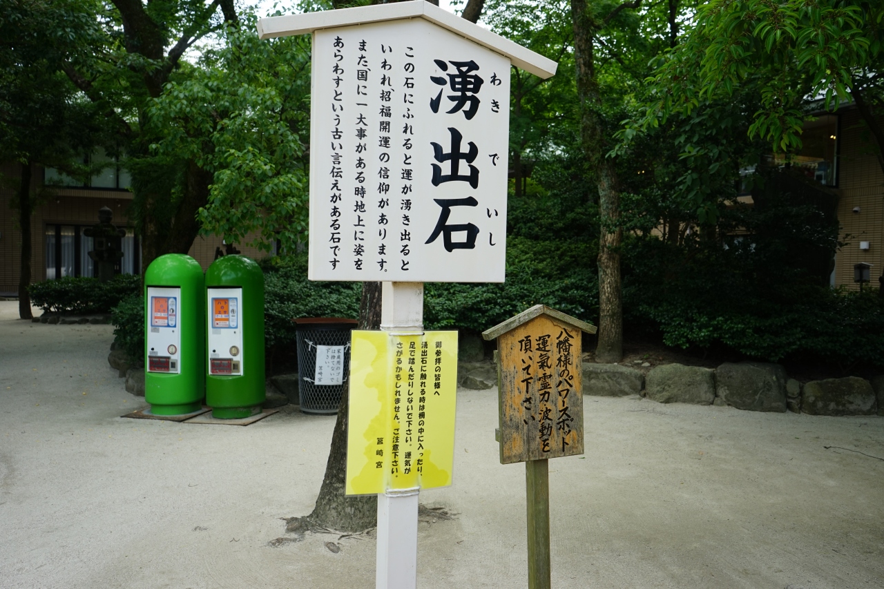 筑前一宮の筥崎宮の境内に入ると触ると「招福開運」のご利益があるといわれる湧出石があります。私が行ったときは誰もいなかったのでゆっくり触ることができました。