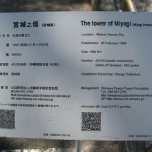 宮城県阿武隅川のほとりから選ばれたという大きな自然石の慰霊塔は、シンプルに「宮城之塔」と刻まれていて、たいへん風格と重量感を感じるものになっています。